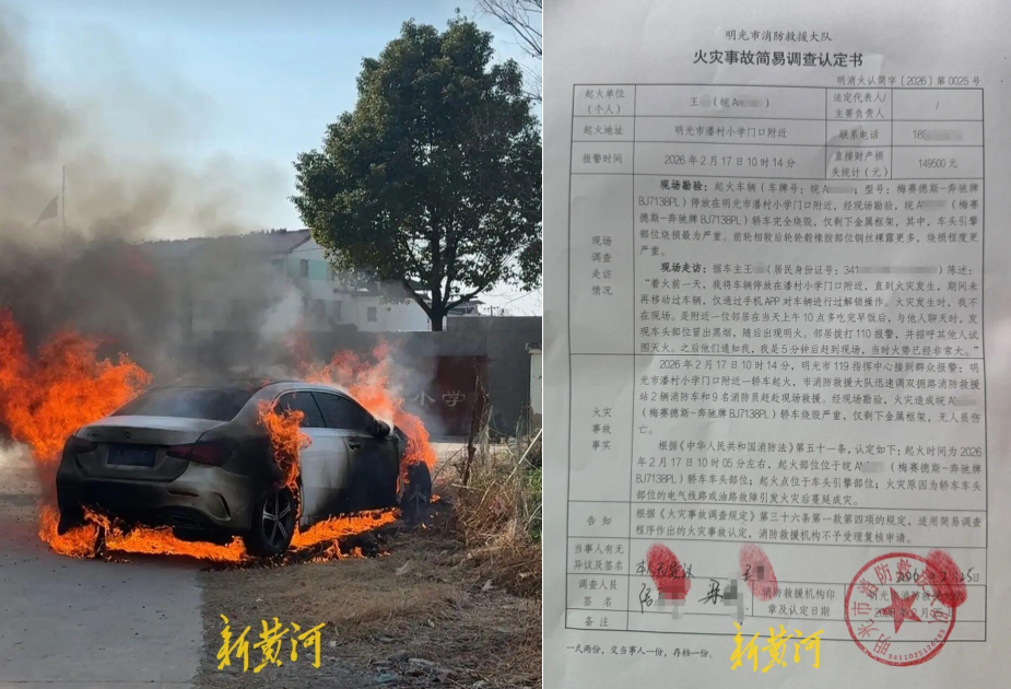 王女士于2024年12月以160500元落地价,购置了一辆奔驰A200L(配置|询价)时尚型轿车,交付后按时完成原厂保养。2026年2月17日,车辆在静置状态下发生自燃,最终车子被烧成了空壳,仅剩金属框架,截至自燃时总行驶里程仅8000多公里。消防救援大队出具的火灾事故简易调查认定书明确,起火部位为轿车车头引擎部位,火灾原因为车头电气线路或油路故障引发并蔓延成灾。