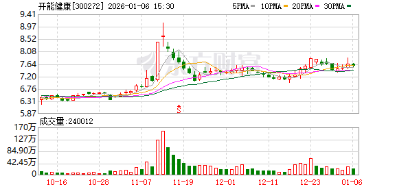证券时报·数据宝统计,截至发稿,开能健康收盘价为7.56元,下跌1.05%,本期筹码集中以来股价累计上涨1.20%。具体到各交易日,6次上涨,4次下跌。
